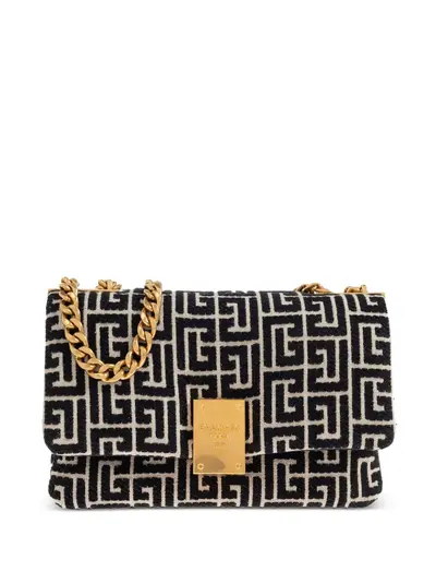 black and white geometric pattern chain detail gold-tone hardware slinging chain strap internal slip pocket