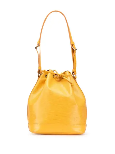 epi leather adjustable leather shoulder strap open top with a drawstring closure interior zip pocket yellow Serial Number: AR0916 This item has no inclusions. Condition: GOOD. This previously owned and used item is in good condition with minimal signs of use. This may include fading of material or plating and scratches. Declared Damages: Exterior Back Feature(s) Moderate Scratches. Please refer to the photos on this product page for a detailed view of the item, including any damages declared.