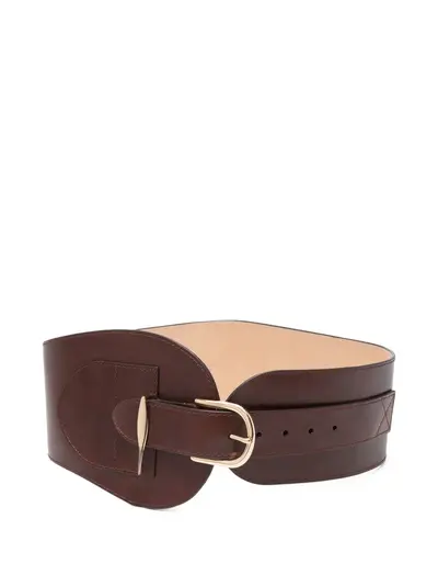 brown gold-tone hardware buckle fastening adjustable fit stitched detailing punched holes