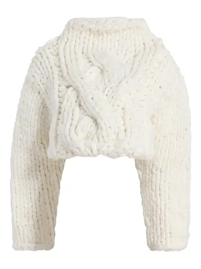 white cable knit roll neck long sleeves cropped