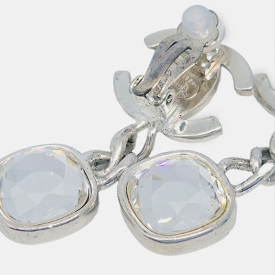 Chanel Dangle Turnlock Earrings Clip-On Silver Rhinestone 97A 1220681 (lpn30987467)