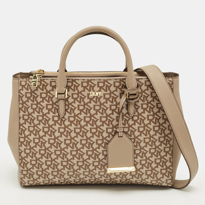 The DKNY Belle Satchel in soft beige canvas is a bag that moves with your day. Carry it by the handles for a classic look, or switch to the detachable strap for hands free convenience. Spacious enough for your essentials, while the signature print gives it a touch of flair.