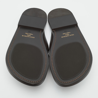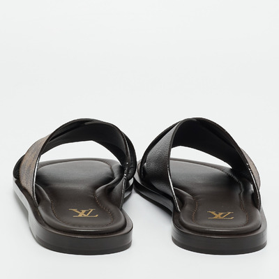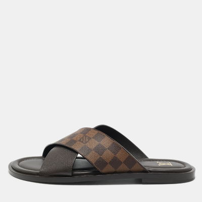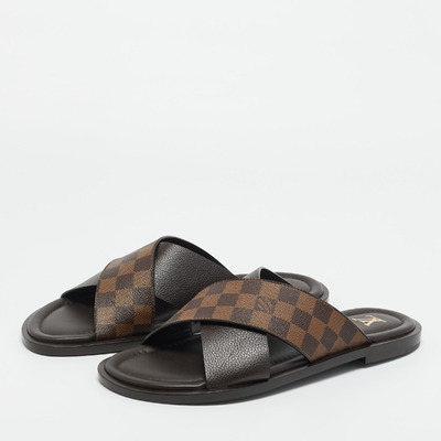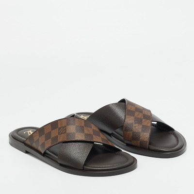 Louis Vuitton Damier Ebene Canvas and Leather Cross Strap Flat Sandals Size 44 1220169 (коричневый, lpn30987601)