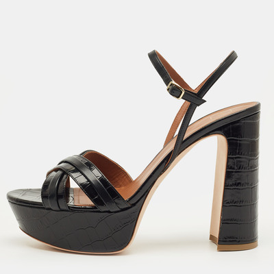 Malone Souliers Black Croc Embossed Leather Mila Platform Sandals Size 42 1220166 (чёрный, lpn30987602)