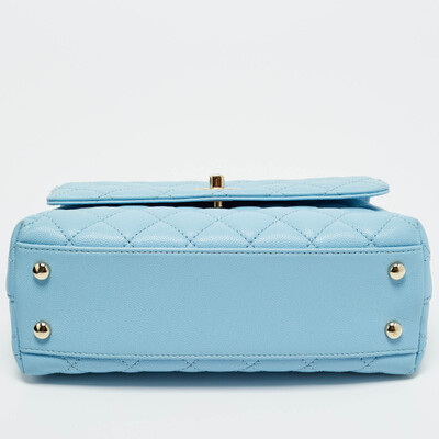Chanel Light Blue Quilted Caviar Leather Mini Coco Top Handle Bag 1220165 (голубой, lpn30987621)