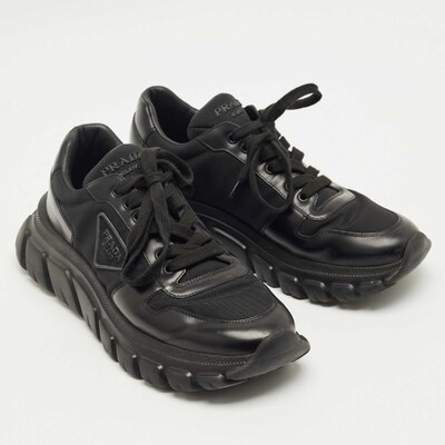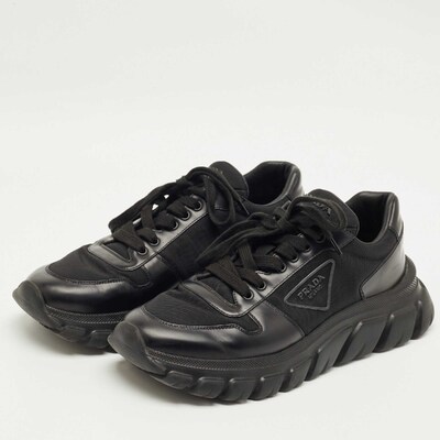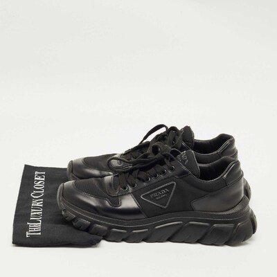 Prada Black Nylon and Leather Prax 01 Low Top Sneakers Size 42 1220111 (чёрный, lpn30987691)