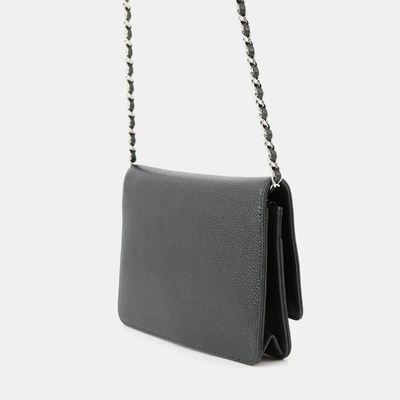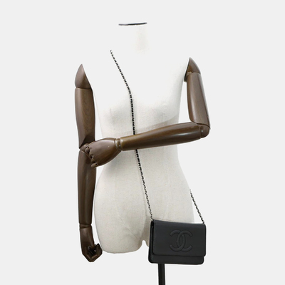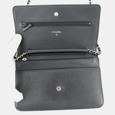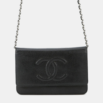 Chanel Cc Logo Chain Wallet Black Caviar Leather 1220052 (чёрный, lpn30987731)