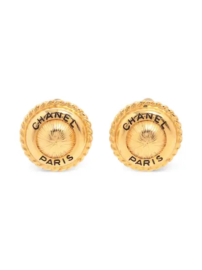 1995 gold round shape rope trim clip-on fastening 'Chanel Paris' lettering ribbed detail Condition: GOOD. This previously owned and used item is in good condition with minimal signs of use. This may include fading of material or plating and scratches. Normal everyday use and external agents may reduce the lustre of gemstones and gold surfaces. To maintain, use specific, non-abrasive products specially meant for cleaning jewellery.