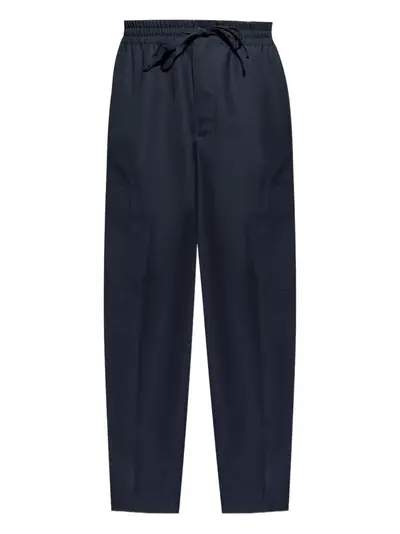 blue drawstring fastening cargo pockets button detail logo patch elasticated waistband