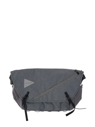 grey grid pattern logo detail adjustable shoulder strap foldover top