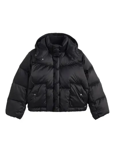 black detachable hood press-stud fastening front pockets high neck padded design
