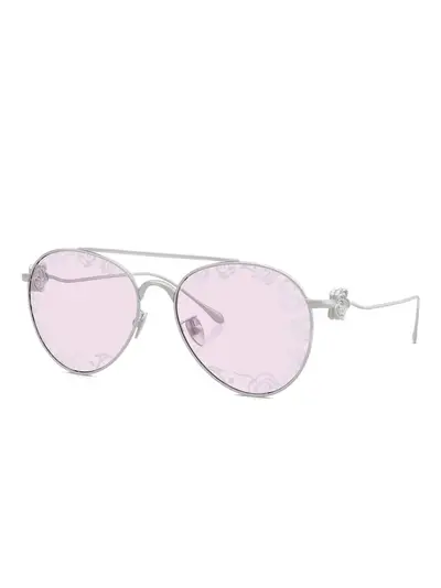 light purple floral detail round frame nose pads These glasses come with a protective case.