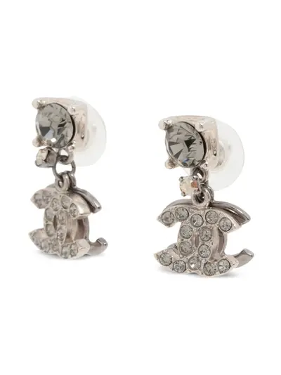 2005 silver-tone CC mark rhinestones square detail post-back fastening for pierced ears These earrings come as a pair. Condition: GOOD. This previously owned and used item is in good condition with minimal signs of use. This may include fading of material or plating and scratches. Normal everyday use and external agents may reduce the lustre of gemstones and gold surfaces. To maintain, use specific, non-abrasive products specially meant for cleaning jewellery.
