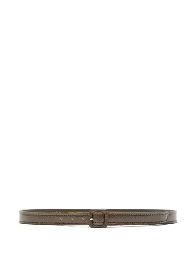 brown embossed finish buckle fastening tonal stitching square buckle adjustable fit