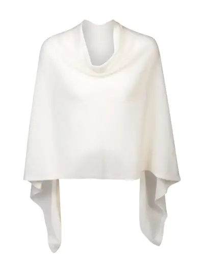 cream white draped design open front shawl design straight hem