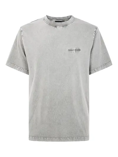 grey embroidered logo short sleeves round neck crew neck