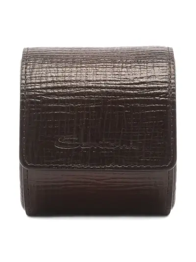brown textured finish tonal stitching flap top cylindrical shape logo detail Please refer to the Size & Fit tab to learn more about this item's dimensions.