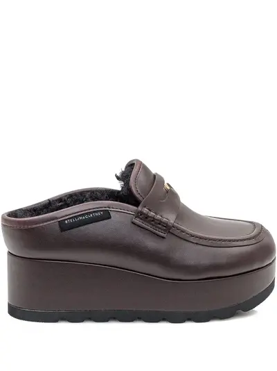 mocha platform sole gold-tone hardware slip-on style faux-fur trim penny strap