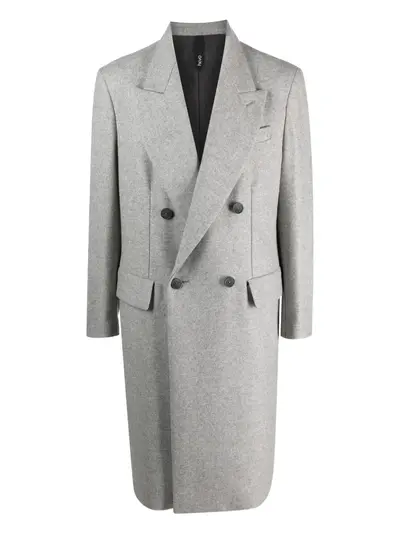 grey double-breasted button fastening peak lapels front flap pockets buttoned cuffs