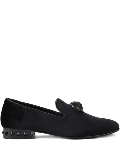 black crystal embellishment eagle head detail slip-on style embellished heel