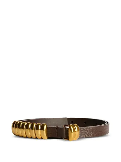 brown gold-tone hardware bead embellishment adjustable fit buckle fastening