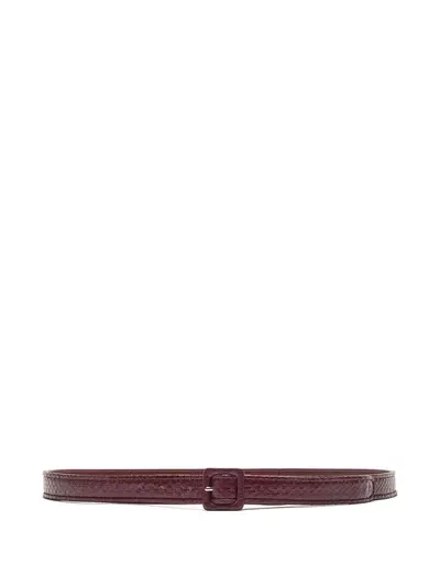 dark red textured finish square buckle adjustable fit single keeper loop pin fastening This item comes from our partner boutiques in a variety of countries and cannot be shipped outside its region (either US, UAE, or the EU & UK). Please check the country of origin in the Shipping & Free Returns tab or your Shopping Bag to make sure it can be delivered to your location.