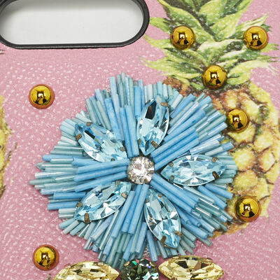 Dolce and Gabbana transforms a simple phone case into a miniature work of art. Multicolour fruit print leather is set with sparkling crystals for a baroque flourish. A practical way to protect your device while carrying a touch of the runway.