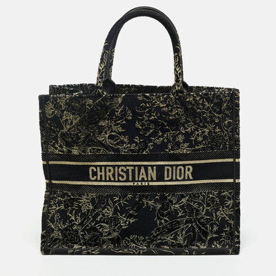 Dior Black/Gold Embroidered Canvas Large Jardin d'Hiver Book Tote 1220737 (чёрный, lpn30992658)