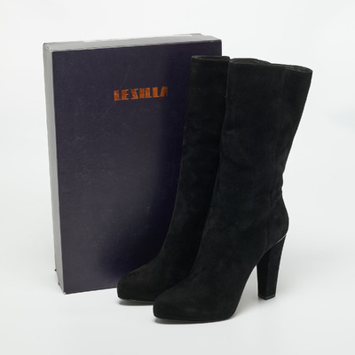 Le Silla Black Suede Zip Up Mid Calf Boots Size 41 1220837 (чёрный, lpn30992696)