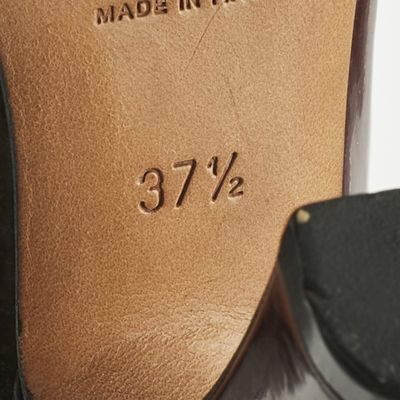 This classic pair of pumps by Marc Jacobs is a must have. Exuding style, these burgundy heels are crafted from patent leather, features bows on the uppers and come with beautiful 10.5 cm block heels. Comfortable and chic, this pair comes with leather soles and will never disappoint.