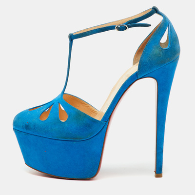 Christian Louboutin Blue Suede Mayada T-Strap Platform Pumps Size 38.5 1220384 (голубой, lpn30992847)