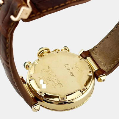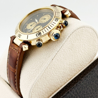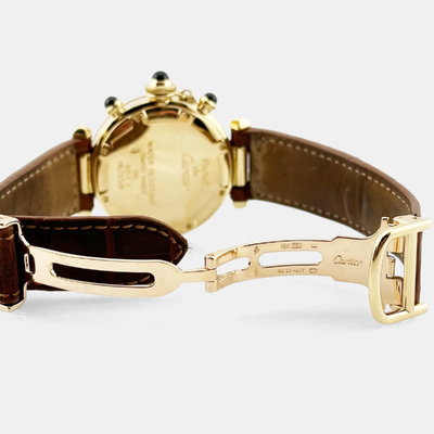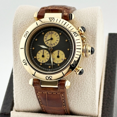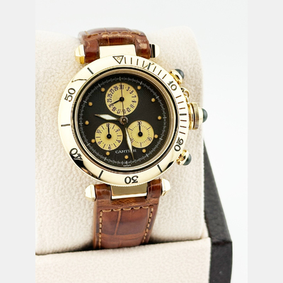 Featuring a 35 mm 18k yellow gold case and a grey dial, the Cartier Pasha 1353 is powered by an automatic movement for precise timekeeping. This genuine pre owned timepiece combines iconic design with subtle sophistication, making it a distinguished addition to any collection.