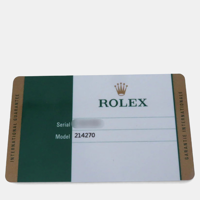The Rolex Explorer 214270 offers a 39mm stainless steel case and automatic movement, with a black dial built for readability in low light. A straightforward, robust watch for those who prefer a slightly larger fit.