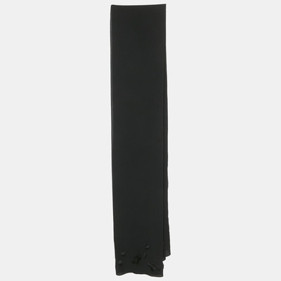 Jimmy Choo’s silk scarf is adorned with black floral appliqués, blending softness with dimension. The delicate texture makes it an elegant accent to eveningwear or a dark neutral coat. A subtle way to add the label’s glamour to your wardrobe.