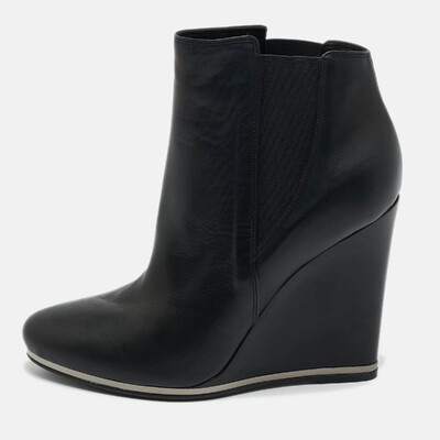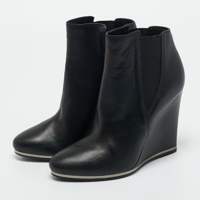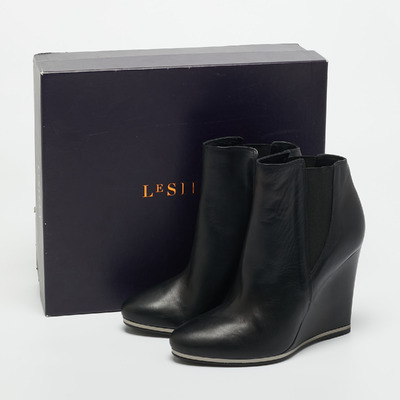 Le Silla Black Leather Wedge Ankle Boots Size 40 1220140 (чёрный, lpn30993019)