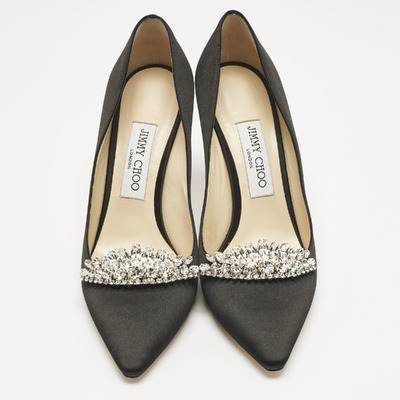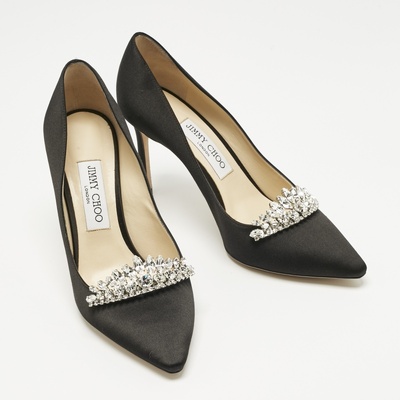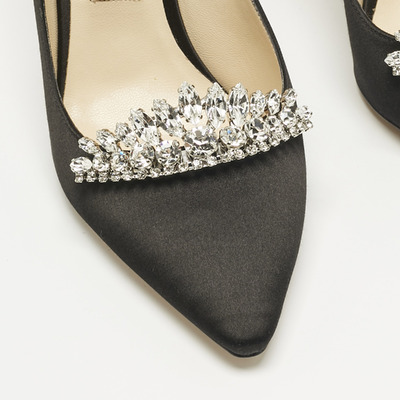 Jimmy Choo Black Satin Crystal Embellished Romy Pointed Toe Pumps Size 38.5 1217677 (чёрный, lpn30993120)