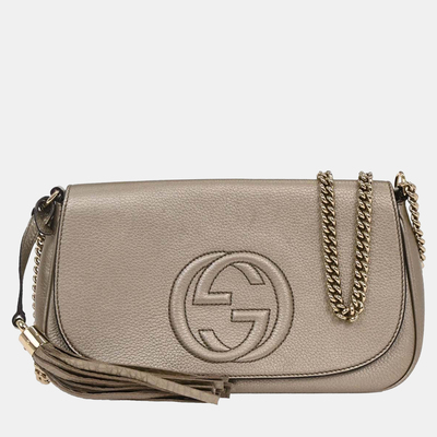 A metallic gold shoulder bag that radiates contemporary glamour. With a chic chain strap and minimalist yet bold design, it transforms any outfit into a statement look, capturing Gucci’s signature balance of luxury and modern appeal.