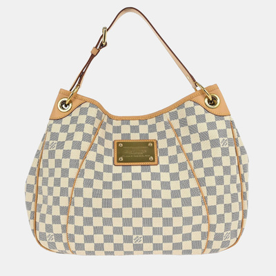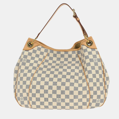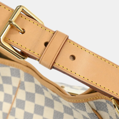This medium sized Galliera PM features Louis Vuittons light Damier Azur canvas with gold tone hardware and natural leather trim. Designed with a wide shoulder strap for everyday wear.