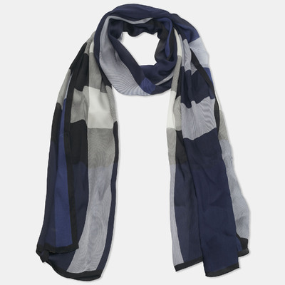 Burberry brings its signature heritage to this soft, blue checked silk scarf. Lightweight and easy to drape around the neck or shoulders, it’s ideal for mild days or indoor wear, adding a subtle touch of style without bulk.