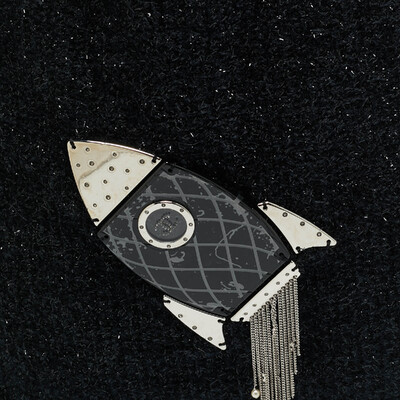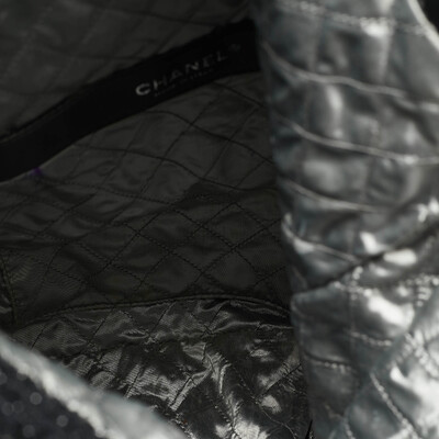 Chanel gives a playful twist to classic tweed with rocket themed embellishments on this shopper tote. Its roomy silhouette combines practicality with bold couture flair. A conversation starting piece for any collection.