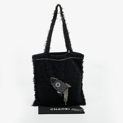Chanel Black Tweed Rocket Embellished Shopper Tote 1218780 (чёрный, lpn30993228)