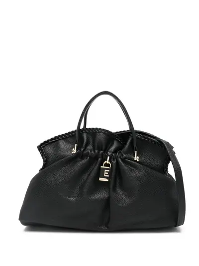 black braided trim padlock detail grained texture adjustable shoulder strap