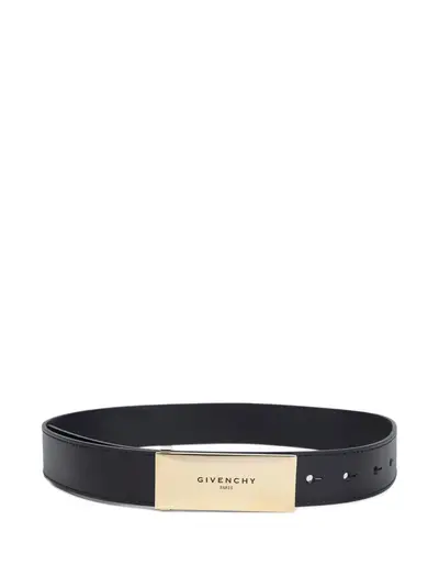 black leather gold-tone plaque adjustable fit punch-hole detailing