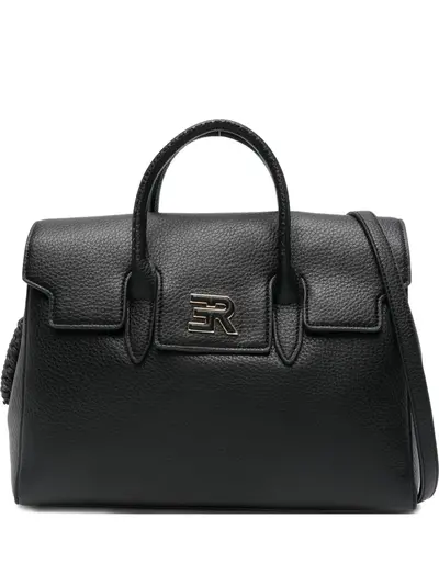 black grained texture top handle detachable shoulder strap logo plaque braided detail