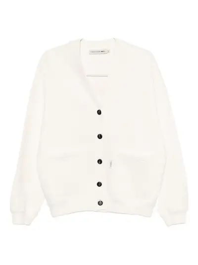 ivory front button fastening two side patch pockets ribbed cuffs and hem