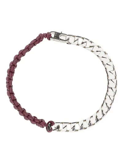 silver-tone/burgundy curb chain interwoven design lobster claw fastening