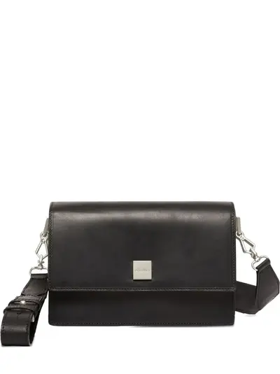black leather silver-tone hardware front flap closure detachable shoulder strap internal zip pocket