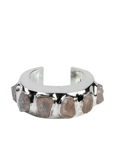 silver rose quartz embellishment open cuff Normal everyday use and external agents may reduce the lustre of gemstones and gold surfaces. To maintain, use specific, non-abrasive products specially meant for cleaning jewellery.