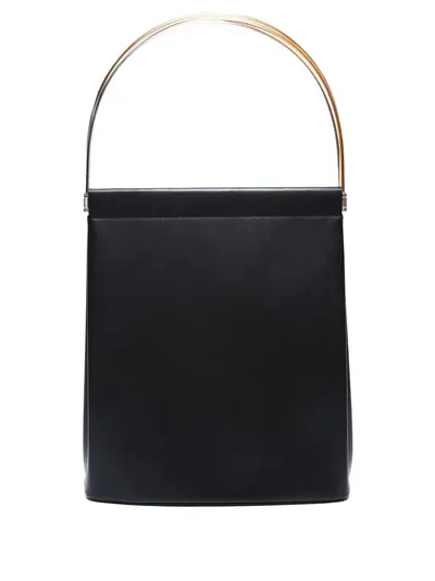 1990-2000s black leather gold-tone hardware top handle internal slip pocket Condition: GOOD. This previously owned and used item is in good condition with minimal signs of use. This may include fading of material or plating and scratches.