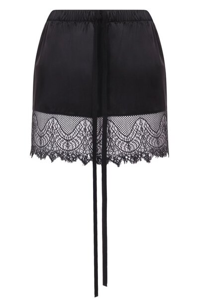 Шорты Vere с эластичным поясом-кулиской сшили из струящегося шелкового атласа. Модель дополнили вставками из полупрозрачного фестончатого кружева в тон.